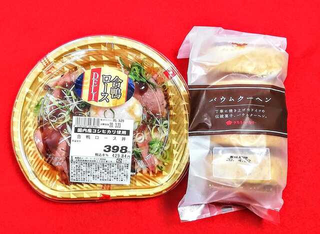 ☆3.3 合鴨ロース丼 タカキベーカリーのバウムクーヘン☆♪