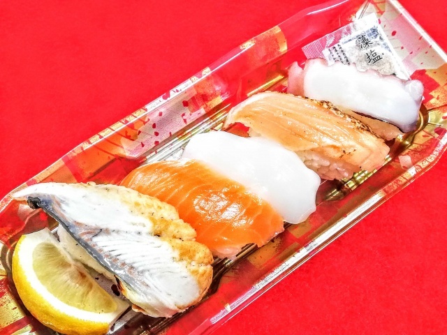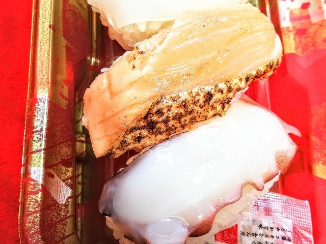 香ばしさと、生の食感。パック寿司とは思えない美味しさ。これはお買い得。超オススメです☆ヾ(*'▽'*)ノ