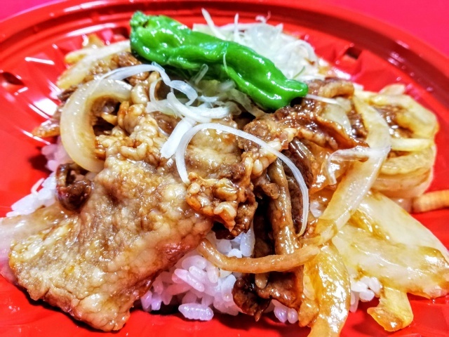 【関西スーパー】の弁当・惣菜コーナーの新商品。ガーリックの香りがとても良い。味付けも美味しい。だだ、チョットどうかと思うくらいビーフが少ない。