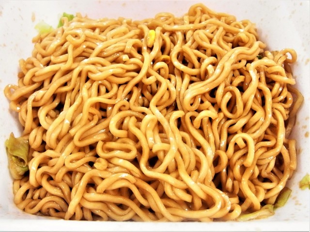 ソースの香りが良い。アッサリした和え麺風で、まあまあ美味しい。
