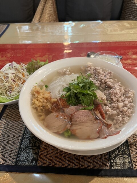 久しぶりにタイ料理を食べにアユタヤへ。タイミングよく、店内のソファー席に座ることができ、ゆったりと食事を楽しむことができました。 店内はタイ人の女性のスタッフと奥に調理の方1名?こぢんまりとしている店内ですがお料理は本格的で絶品のタイ料理を楽しむことができます。 ☆ヤムウンセン(1300円) 単品は2名分くらいあり、ボリューム満点です。辛さが選べるので自分好みに味付けしてもらえます。... 詳細を見る