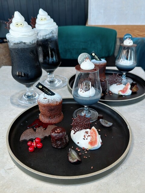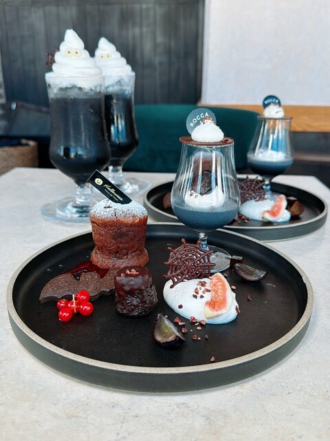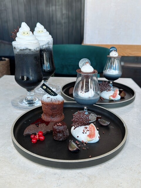 私はハロウィンのプレートとマスカットのタルトとドリンクを注文。