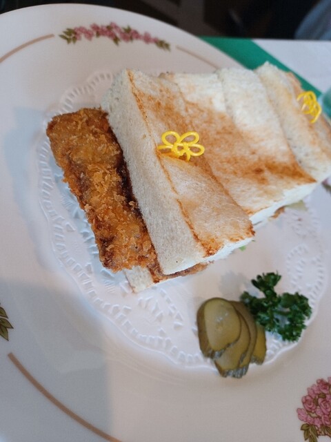 カツサンド:食べ応えバッチリなカツ、それにマッチしたパンのコラボレーション、最高です。ビールにもバッチリあいます。