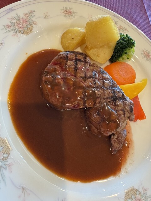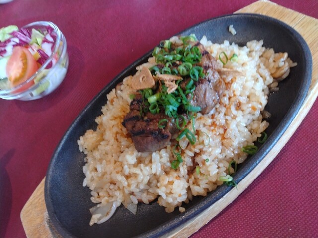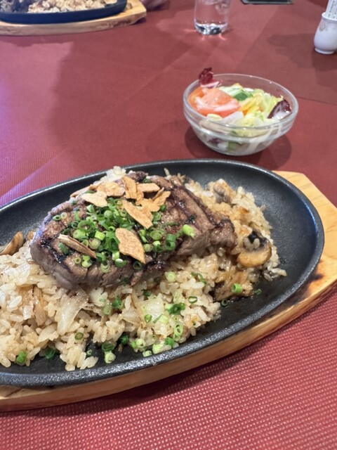 名門ゴルフ場でランチ。めちゃくちゃ雰囲気良いです。ステーキピラフなるものを注文。鉄板で熱々で出てきました。ガーリックきつめ、お肉の質が高い訳ではないですが、雰囲気含めで満足出来ました。ボリュームもあっ...