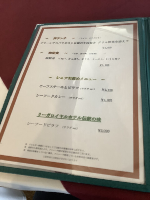 ゴルフの醍醐味の一つはランチで美味しいものを食べること、楽しみにレストランに行ってみると運営はリーガロイヤルがしているとのことで期待が高まる。