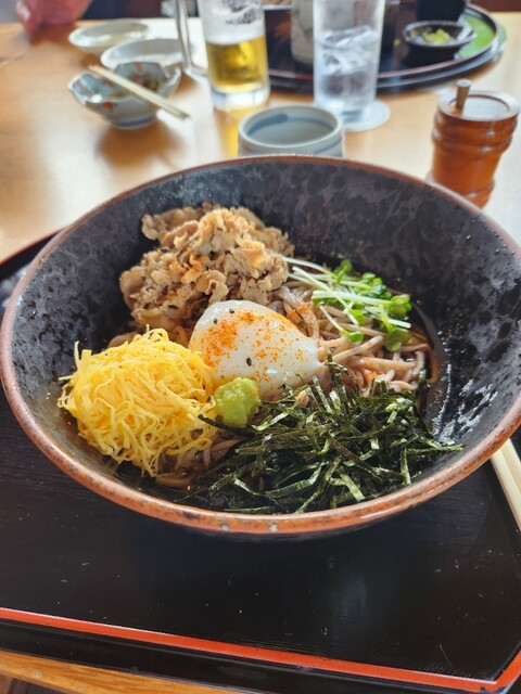 茨木カントリーのレストランはどのメニューも美味しいですが、この時期のおすすめはお蕎麦、冷たいお蕎麦に半熟たまごをのせて食べるお蕎麦は最高です。