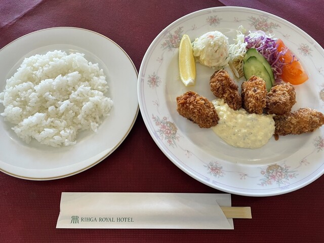 有名なシーフードピラフと迷いましたが、カキフライいただきました。