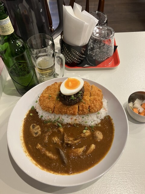 前々回は野菜たっぷりカレー、前回は前々回に隣にお座りの通な方が美味しそうに召し上がっていたプレートカレーをいただきました。どちらも美味しかったです。ビールはハートランドでカレーに合います。またグラスが...