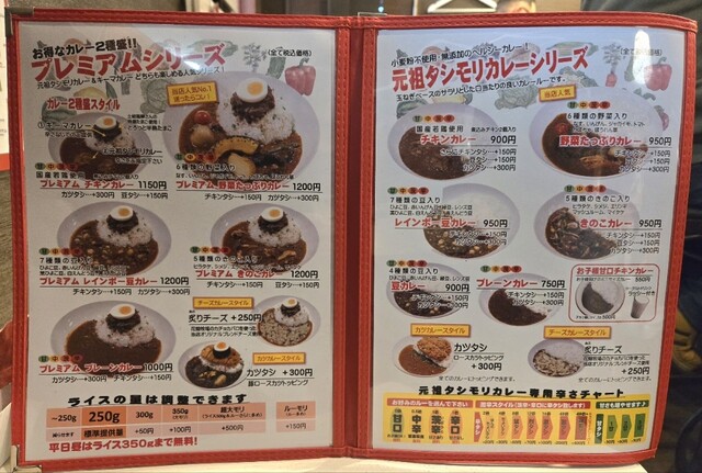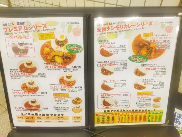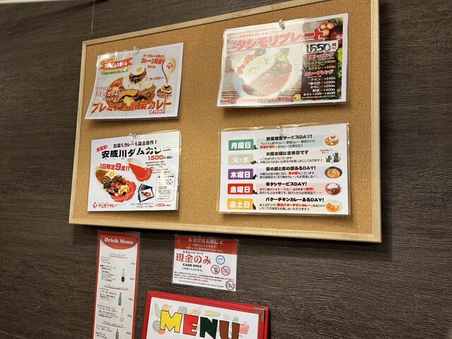 メニューに様々な種類のカレーがあるが、