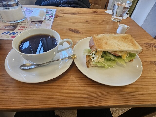 私が頼んだのは「ハーフトーストサンド」です。此れは価値あるモーニングセットです。結構ボリュームもあり、分厚いサンドが特徴です。とても美味しく食べ応えもあり大満足です。本当にお勧めであります。