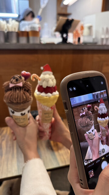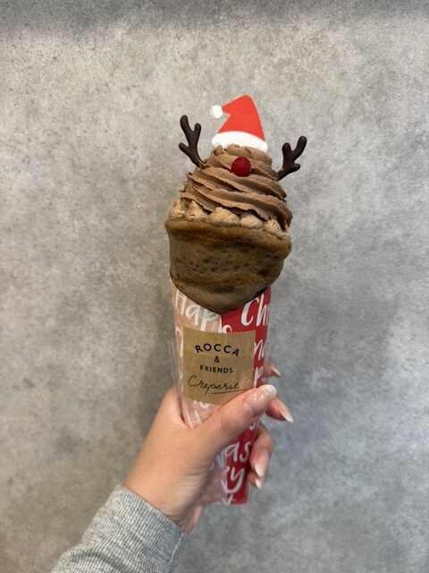 季節限定クレープの中でもクリスマスがお気に入りで毎年食べています。今回はトナカイのチョコクレープを注文しました。濃厚なチョコレートクリームで中には生チョコやカスタードもたっぷり入っていました。オレンジ...