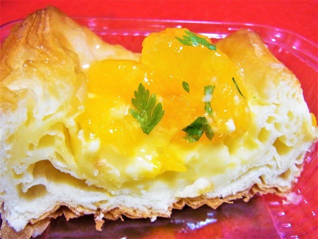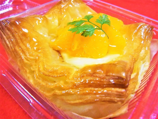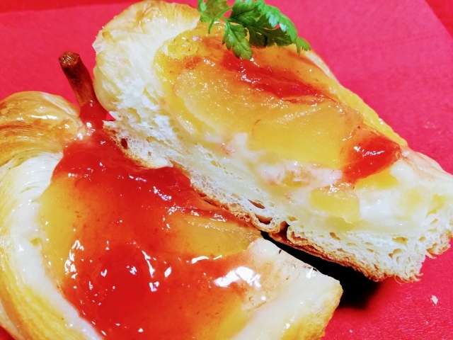 柔らかいタイプのデニッシュ生地に、カスタードとリンゴ。見た目が可愛く、リンゴがタップリで美味しい。