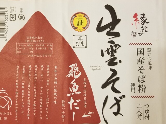 各種、魅力的な商品が並ぶ類農園で購入、出雲たかはしの飛魚出汁出雲そば。