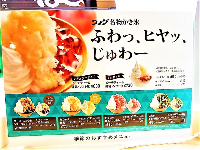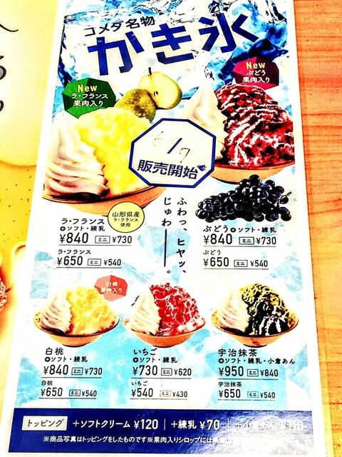 さて、メニューを検討。かき氷 始まっている。
