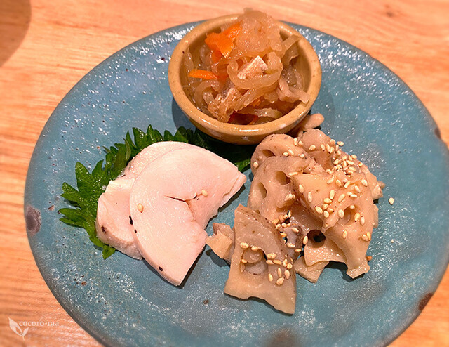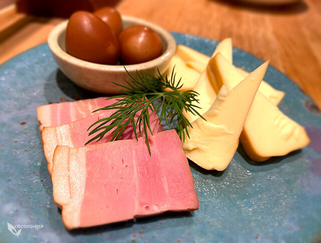 夜はふらっと立ち飲みで、手作りの和洋食小皿をどうぞ。