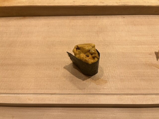広く美しい白木のテーブルを挟んで大将と対面し、いい緊張感のある本物の鮨がいただけました。