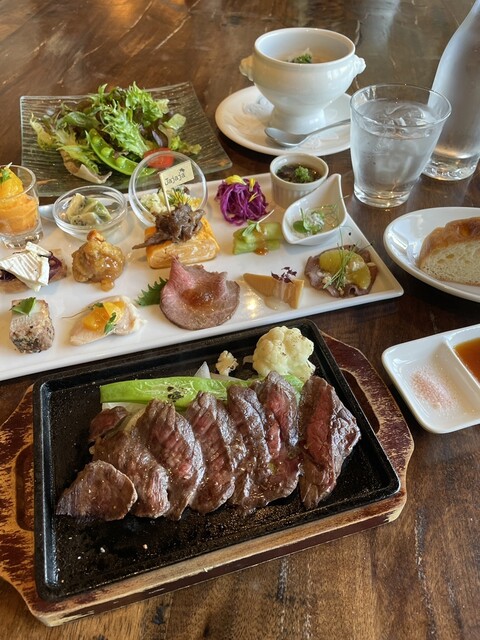 ランチはコースのみです。前日までに予約が必要です!メインはランプステーキにしました!前菜、サラダ、スープ、手作りフォカッチャ(おかわりできます)がセットで付いてきます。別でチーズの盛り合わせも注文しま...