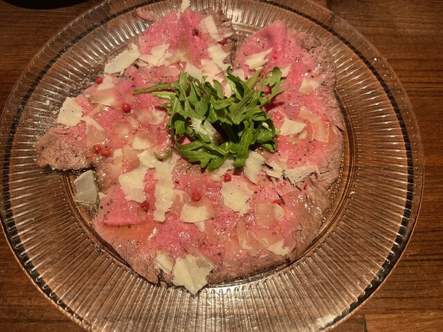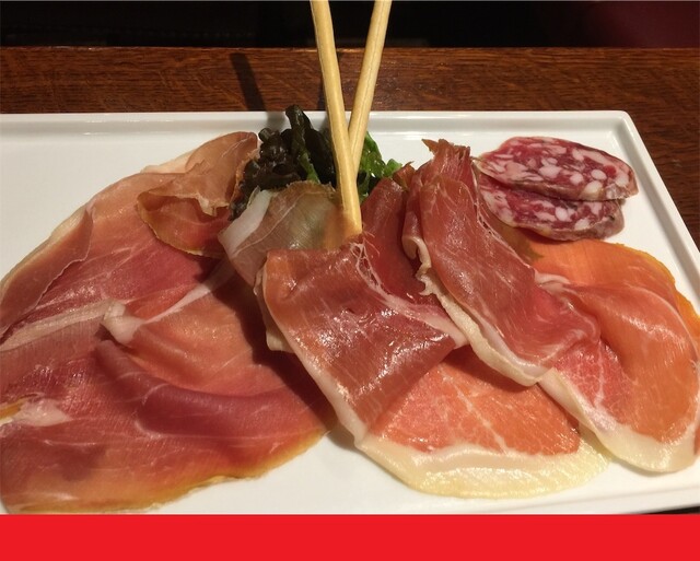 希少部位3種食べ比べ、前菜盛り合わせ、生ハム盛り合わせ、サラダ、チーズをたっぷり掛けたリゾット。どれも美味!料理に合わせるワインも豊富で、特に樽出...