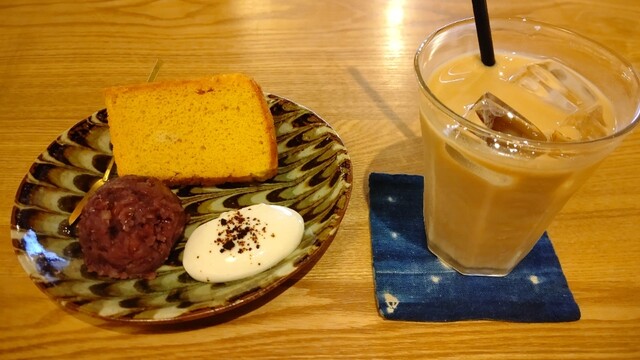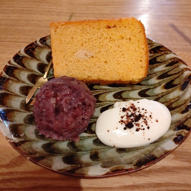スイーツは味噌シフォンケーキを食べましたが、味噌入りのシフォンケーキ、程よい甘さですごく美味しい!一緒について...