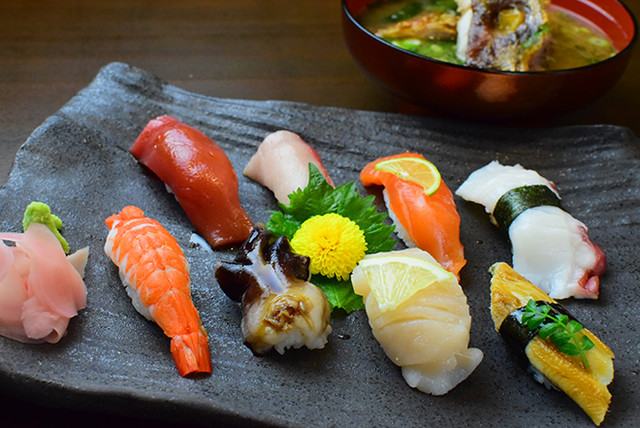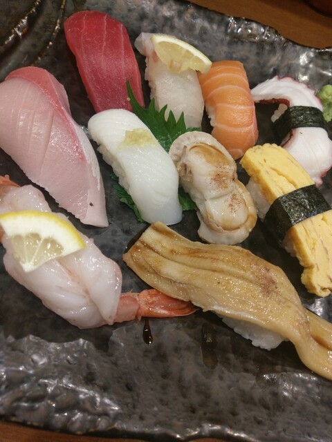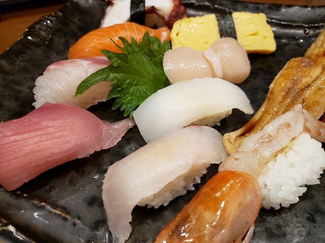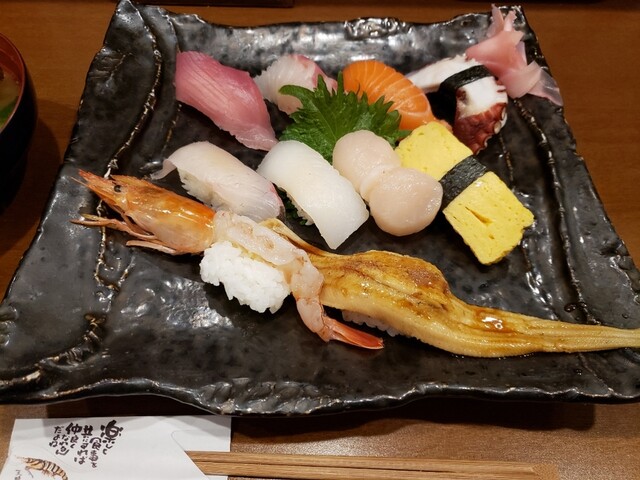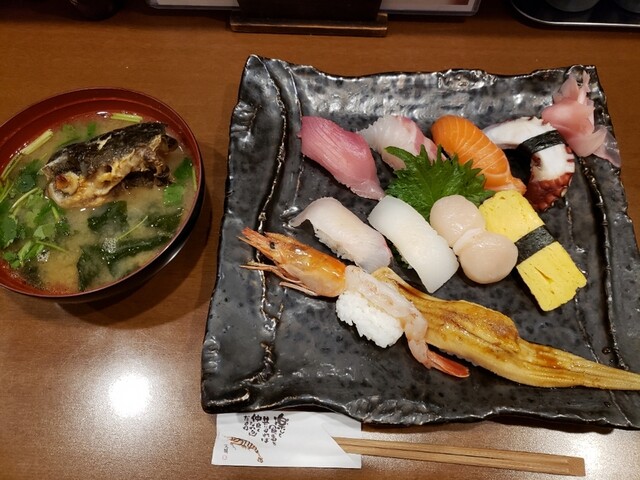 散歩途中にお寿司ののぼりを見て訪問 ランチメニューで 満腹にぎり寿し1,400円 天ぷら盛 上 850円を注文 にぎり寿しには、鯛の骨で出汁にしたお味噌汁もついてます。 ... 詳細を見る