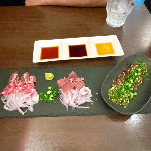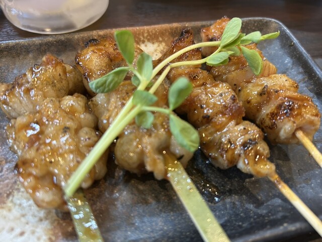 当店看板メニューの低温調理のレバ刺し・ハツ刺し・ツラミ刺しの盛り合わせや 炭火焼きの串焼きをご用意したコースです