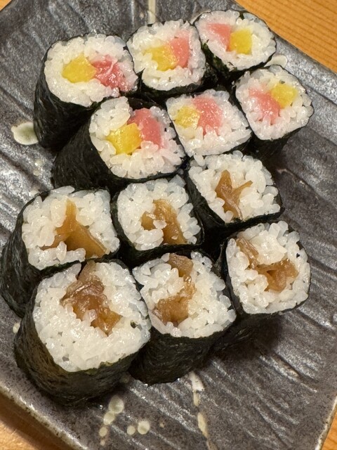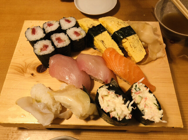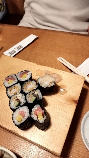 寿司は1貫から注文でき、マグロ・サーモン・はまちなど定番ネタを中心に盛り合わせでオーダー。チェーン居酒屋ながらネタの厚みも十分で、シャリも小さめで...