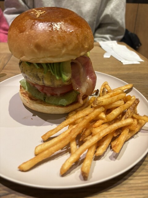 事前に予約して行きました。 平日でしたが、お昼時はにぎわっていました。 テラス席もありますが、寒い日、暑い日、雨の日など天候によって店内で食べたい!という場合は予約が安心かと思います◎ ◎ハンバーガー 1,100円 ◎フレンチフライ・ドリンクセット 500円 ◎アボカドバーガー 1,3... 詳細を見る
