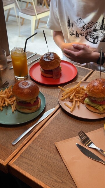 当日予約して伺いました!お店の人も明るく笑顔で対応していただき気持ちよかったです!色々とメニューあるなかで、まずはスタンダードのハンバーガーを選びました。サラダとドリンクセットにしました。お肉の味がし...