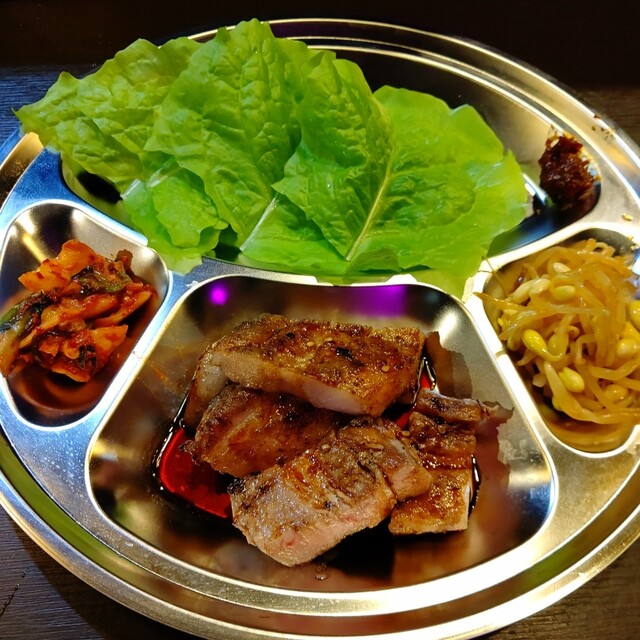 サムギョプサル低温調理しているため鉄板で軽く炙っていただくだけでお召し上がりいただけます♪チュクミや歴代継承の骨付きリブロースステーキもおすすめ◎