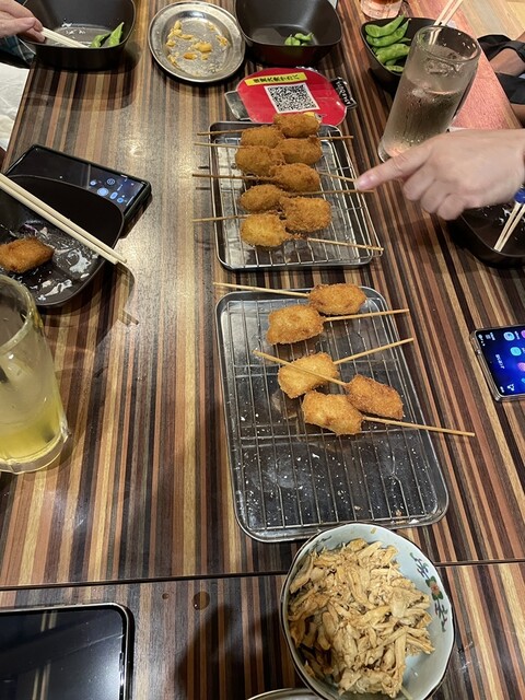 自分の頼んで覚えているものは生ビール、レモン酎ハイ、麦ロック、シークワーサーサワー、焼き鳥、串カツ、最初に出てくるサラダ、唐揚げ、ポテトフライ、ポテトサラダ、よだれどりなどなどです。