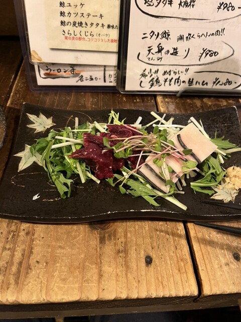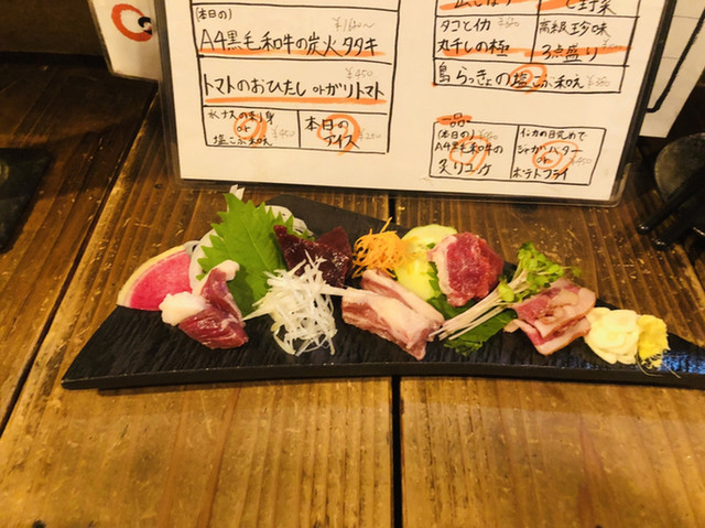 色々な部位が楽しめました。臭みもなく、馬刺しみたいでヘルシーな旨味があり、美味でした(^o^)