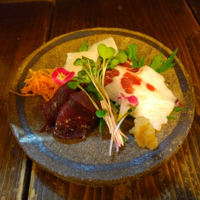 鯨と馬は盛り合わせ、鶏は焼き物で。