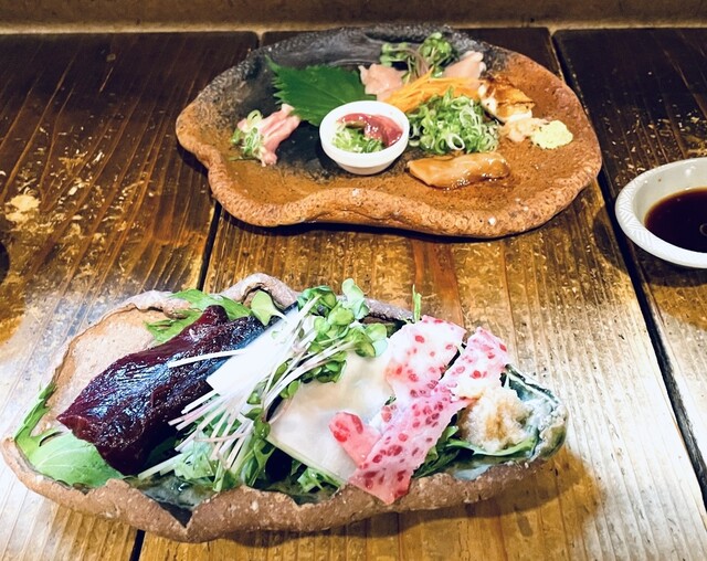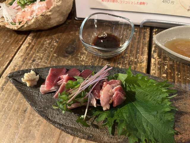 まずはさまざまな部位の刺身。これが中々味わった事がない物や読み方もわからないような部位ばかりで美味いし楽しい。...