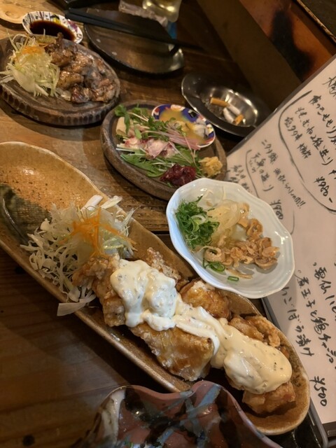 焼き鳥が食べたいと言われて仕事帰りに訪問できるお店をネットで検索して鶏と鯨あぶり家さんを見つけたのでネット予約しました。店舗近所には駐車場がたくさんあるけどタイミング悪く歩いて10分ぐらいのところしか...