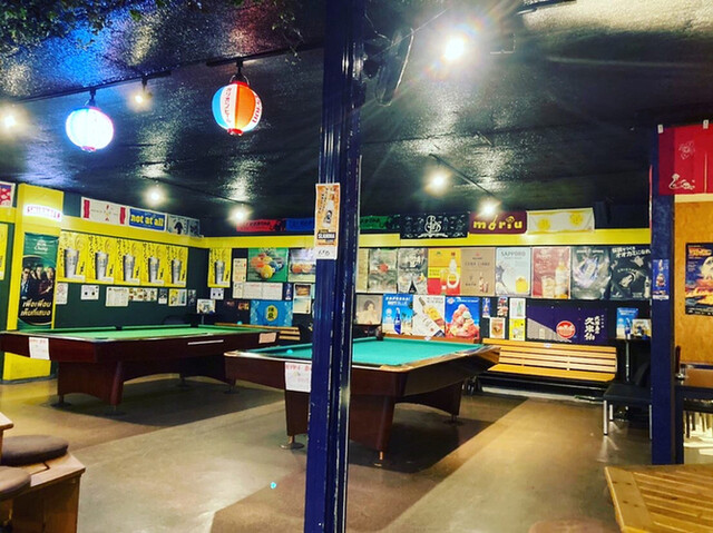 店内は広々して、バーカウンター、ビリヤード台、カラオケルーム、ライブステージもあり楽しい雰囲気でした!
