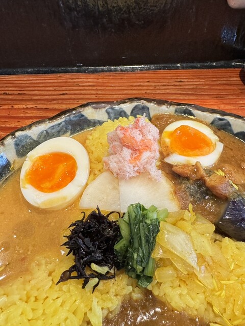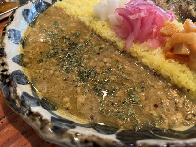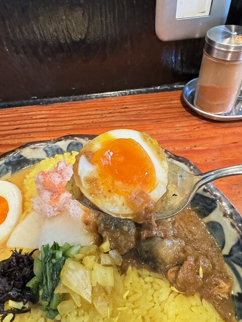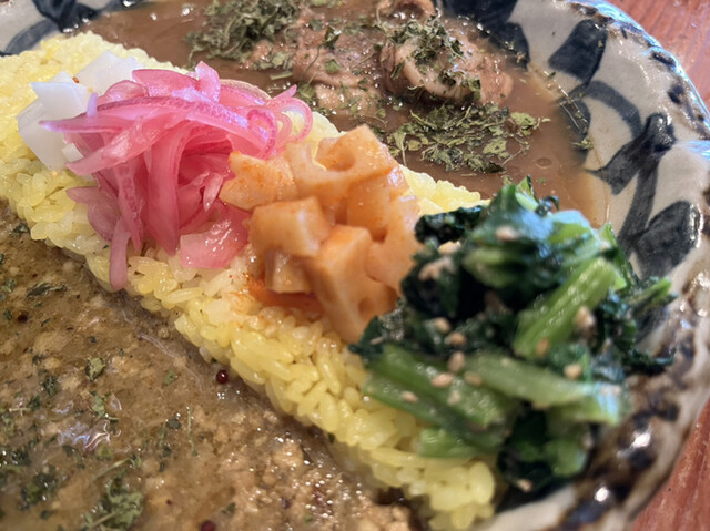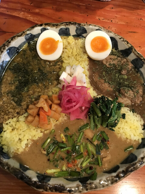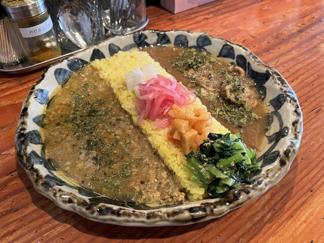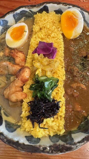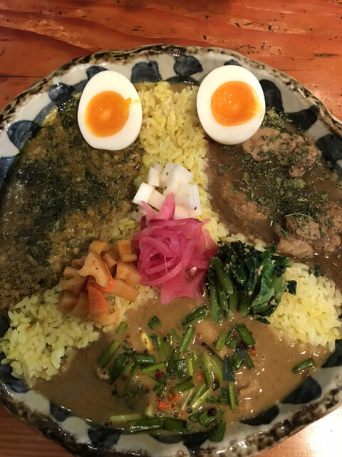 3種類のカレーから食べたいカレーをチョイスしていくシステムは変わらず。種類によって盛り付け方も変わっていくのは見た目は面白いですが、提供のスピードはもちろん落ちます。複数で食べにいくのには適していません。店自体もカウンター5席程しかないので、最大で...