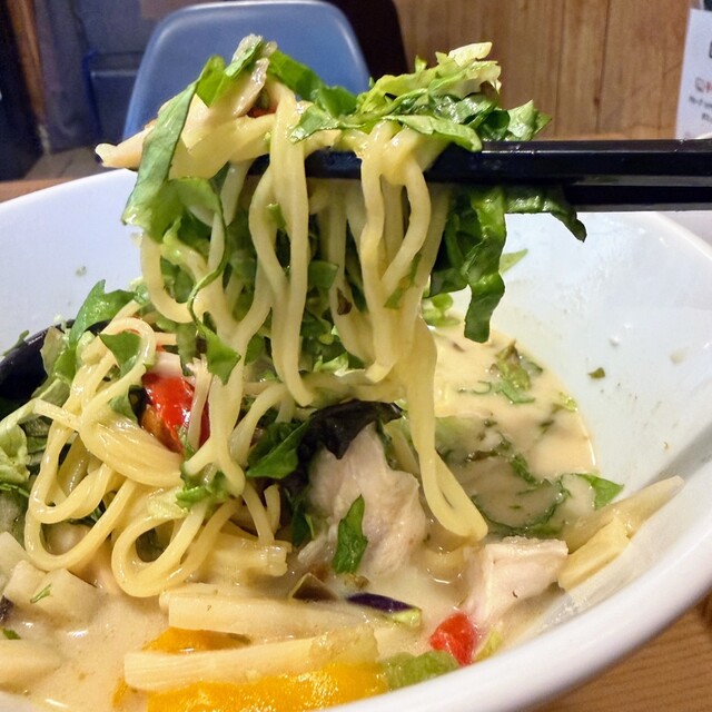 ラーメンのメニューは一種類、『野菜たっぷりグリーンカレーラーメン 880円』のみ。