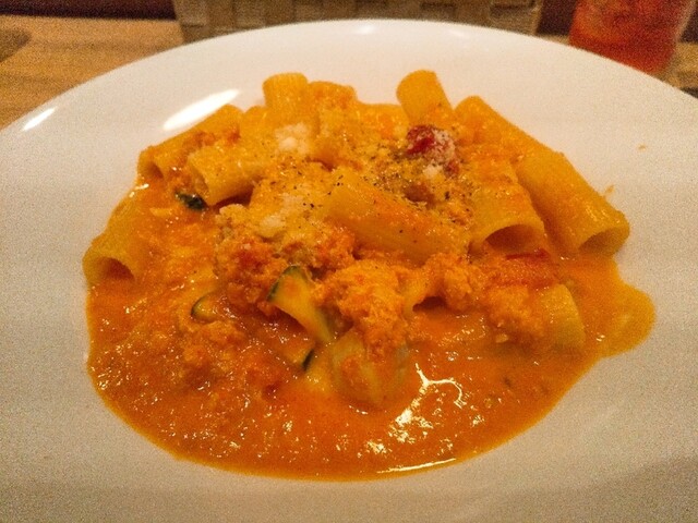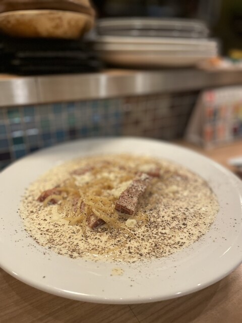 パスタは久しぶりに食べるカルボナーラ。黒こしょうたっぷりに惹かれて頼んだ。濃厚やけどくどくなく美味しかった。また、行きたいお店!