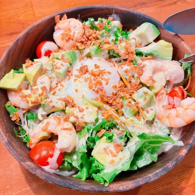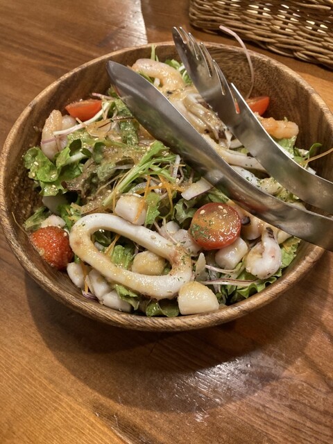 エビやいか、貝柱などシーフードがたくさん入ったサラダでした。