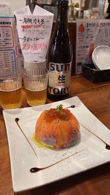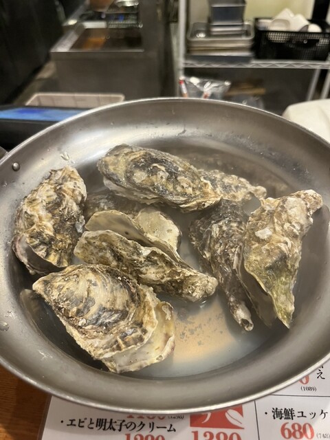 知人と枚方市で食事をすることになり、彼が出した三択の中から選択。店は活気のある酒場の雰囲気。ちょっと五月蠅いけど悪い気はしない感じ。売りにするだけあって魚貝系のメニューが充実!特に最後に頼んだカキ釜は...
