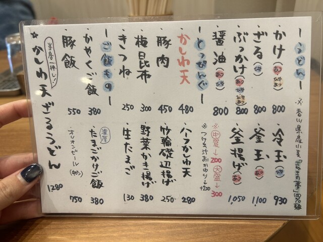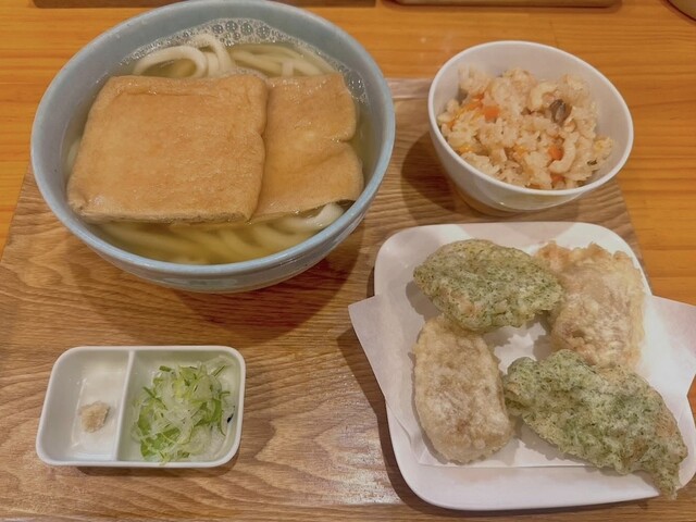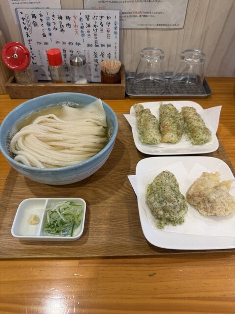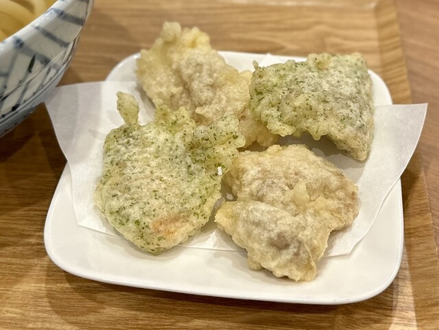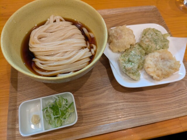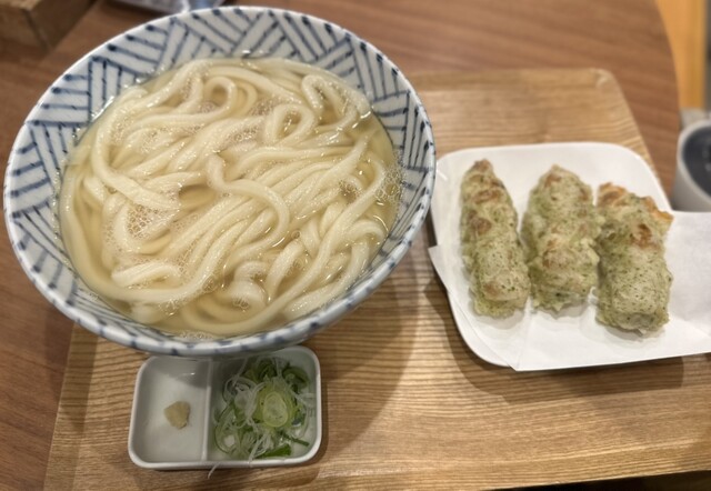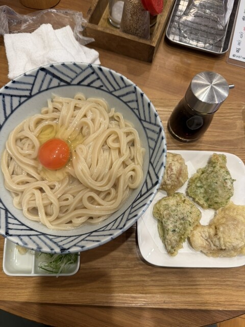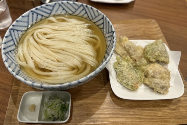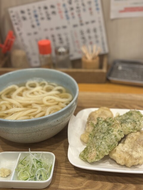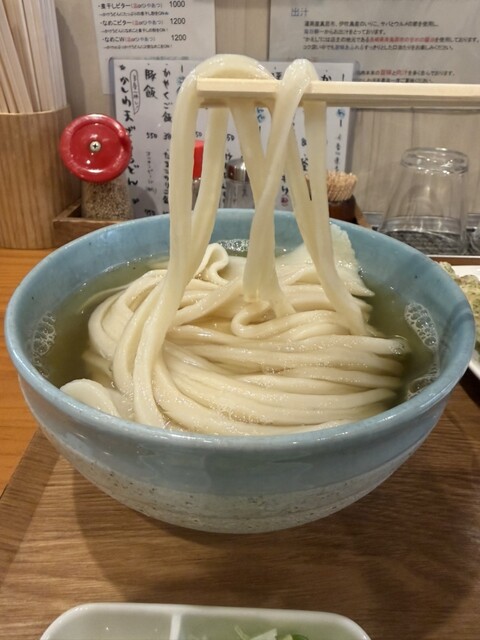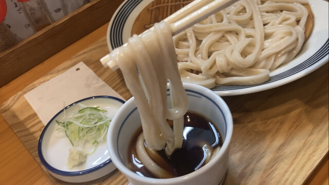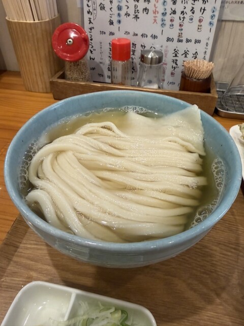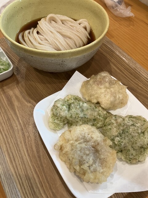お昼に行きました。かなり混んでいました。30分程度並んで入店できました。冷たいうどんを食べました。こしがあり食べ応えがありました。一本太い麺が入っていて、もちもちしていてとてもおいしかったです。かき揚...