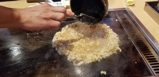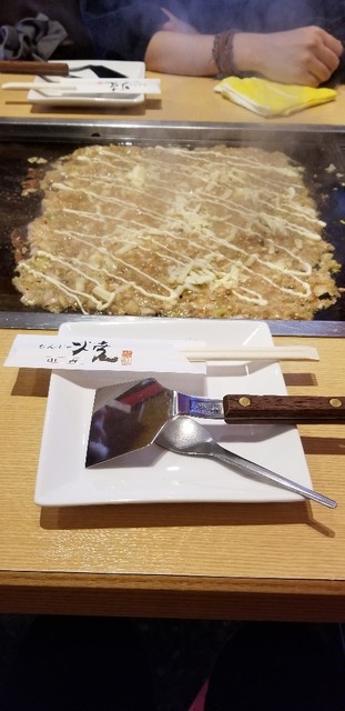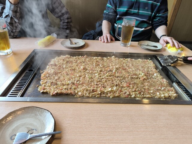 美味しいもんじゃ焼きのお店。2~3人用のビッグなもんじゃ焼きもあり、店員さんが目の前で手際よく作ってくれる!塩焼きそばも美味しかったです。