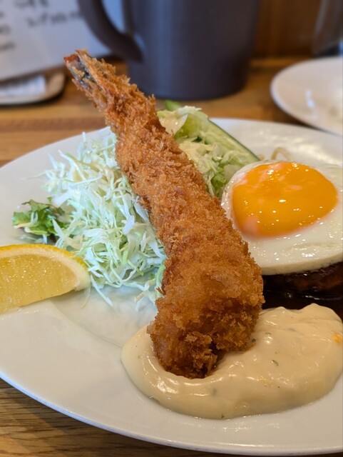 白身魚フライとトッピングは目玉焼きを注文。