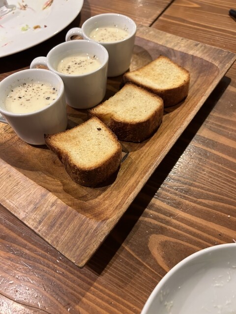 フルコースランチをたべました。ここは私のお気に入りの店で何度も行っています。ランチの時間はわりとこんでます。アヒージョを食べたくてランチ時に行きましたが、アヒージョは夜メニューでした。また、夜にも行き...