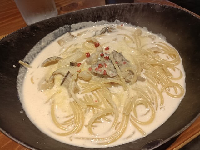 カキとキノコのクリームパスタ
