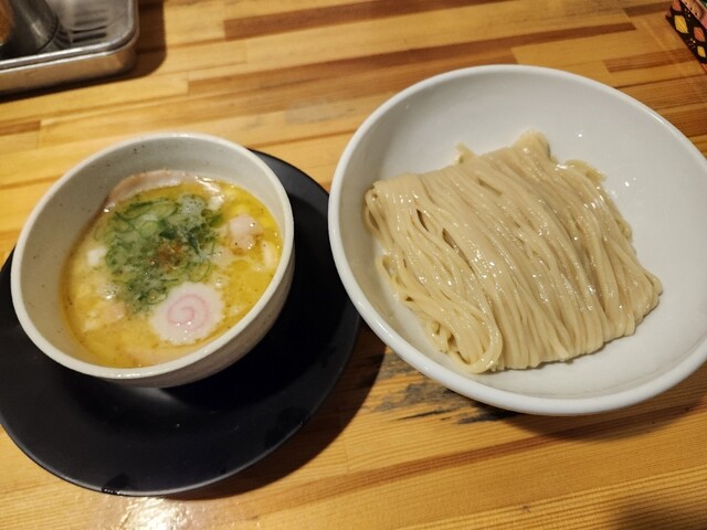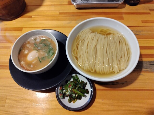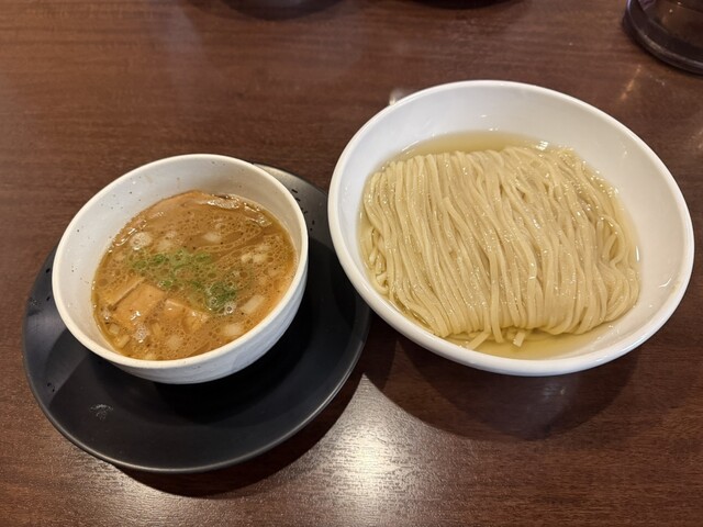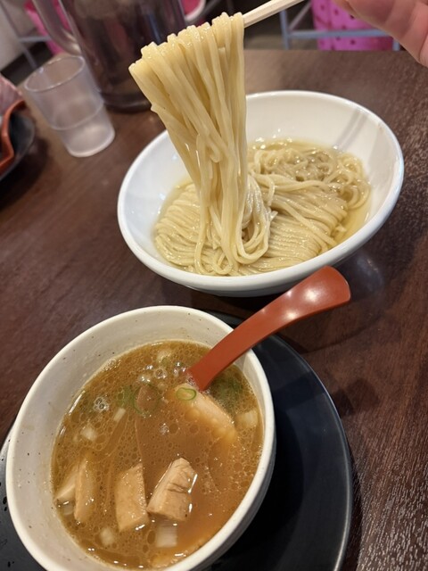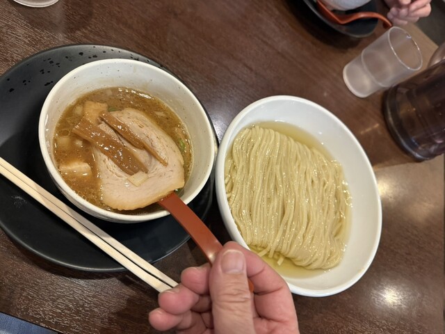 鶏白湯ベースのつけ汁は豚バラ肉ロールスライスや豚角切りチャーシューも沢山入った美味しさです。
