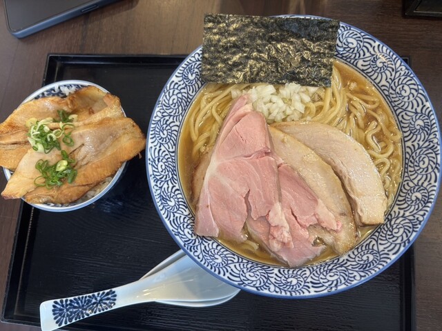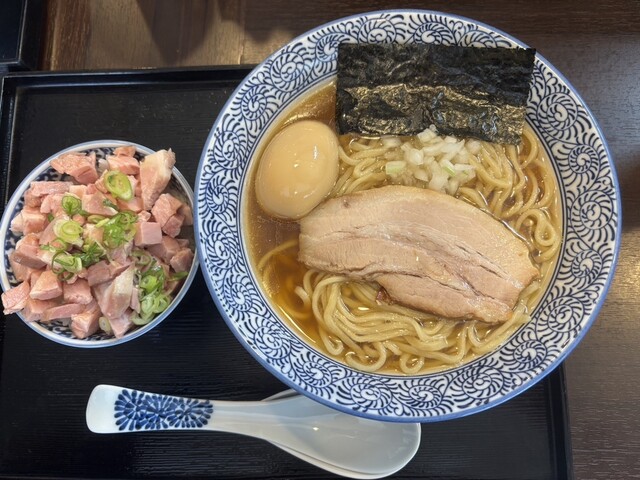 シンプルな中華そばを注文しました。チャーシューは豚バラでかなり重め。麺はツルツルしていて美味しい。スープは、複雑な味って感じです。...