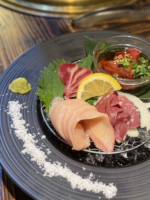 初めてお伺いしましたが、めちゃくちゃ美味しかった! 鶏焼肉スタイルのお店は、ブロイラーをタレに漬け込んだり色んな薬味を使い創作系にしたり、ブロイラーの臭みを誤魔化す為に味が濃いお店が多いが、ここは良い地鶏を良い状態で下処理し、そのまま焼き、塩で食べるスタイル。めちゃくちゃ好みでした。 鶏... 詳細を見る