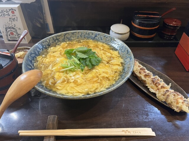 JR学研都市線四条畷駅より徒歩3分 四條畷神社に向かう参道にございます。 細打ちながらコシのよいうどんと揚げたての天ぷらをお楽しみ戴きます。一品料理や旬な酒のあてもご用意いたしました。