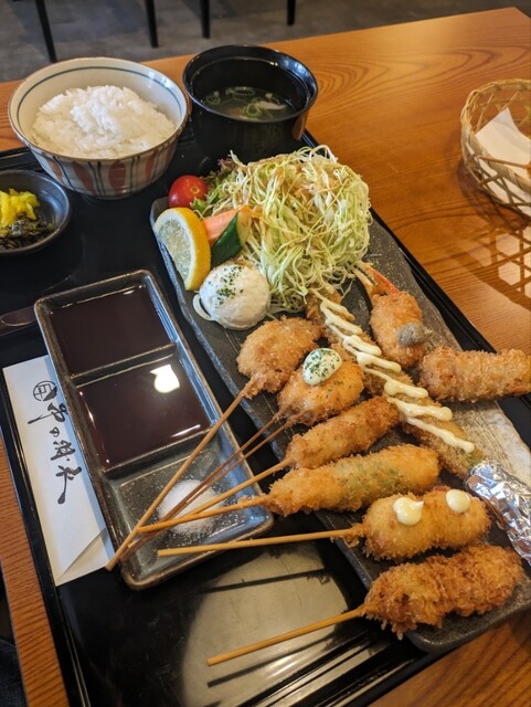 串揚げ8本セットや薩摩黒豚のとんかつなどランチメニューも充実